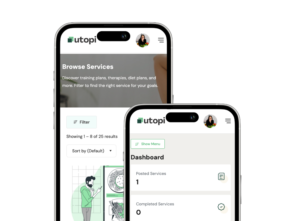 Utopi connects you with reviewed wellness specialists — psychologists, nutritionists, personal trainers, life coaches, spiritual coaches, and more. Our platform helps you find the right professional for your needs, based on real reviews, transparent profiles, and community ratingsCompare services, explore experience, and book safely. A modern, transparent way to choose specialists by reputation, not by followers.